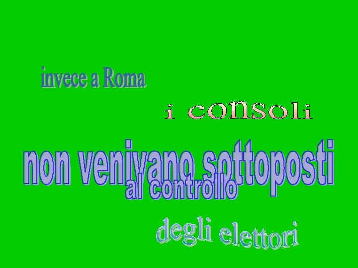 I poteri e la legge • Caratteristiche delle magistrature: – collegialità; – annualità. • Il sistema di controllo reciproco tra magistrature e tra istituzioni è garanzia finalizzata a prevenire: – tirannia; – arbitrio. • Il sistema, pur complesso, garantisce ai cittadini la certezza del diritto. • I romani inaugurano il principio, moderno e contemporaneo, in base al quale, • “non governano gli uomini ma governano le leggi”.