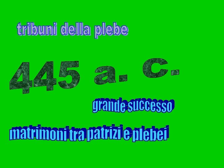 Un lungo conflitto politico e sociale I nodi del contendere • Diritti politici passivi: accesso alle magistrature. • Diritti civili: es. divieto di matrimonio tra plebei e patrizi. • Diritti economici: assegnazione dell’ager publicus. Un “mostro giuridico”: il nexum • “prigione per debiti”: scadenza a 30 giorni; se il debitore non trova un vindex, capace di garantire per lui, viene consegnato in catene al creditore; per 60 giorni viene alimentato con una libbra di farro; se alla fine si regge ancora in piedi il creditore può ucciderlo o venderlo come schiavo.