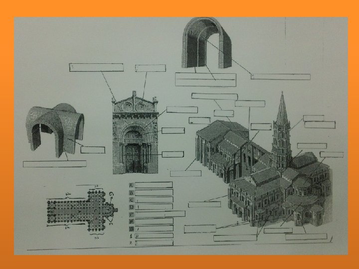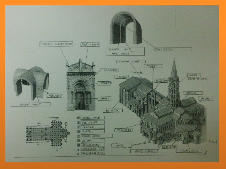 BELL TOWER AMBULATORY TRANSEPT PORTAL APSE CROSSING CENTRAL NAVE PLAN OF A ROMANESQUE CHURCH AISLES OR SIDE NAVES