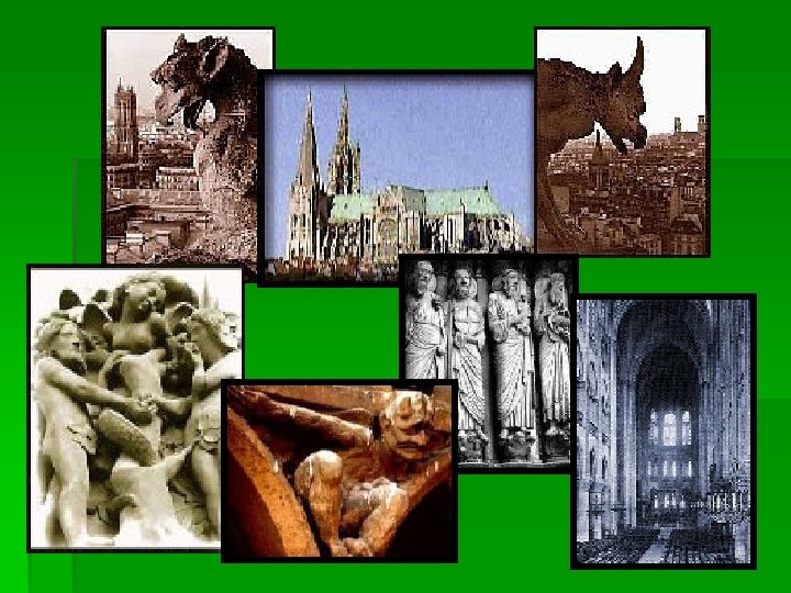 § Gothic literature comes from the style of the Gothic cathedrals with vaulting arches and spires which reach wildly to the sky as if the builders were trying to grasp the heavens; and § are covered with wild carvings depicting humanity in conflict with supernatural forces—demons, angels, gargoyles, and monsters.