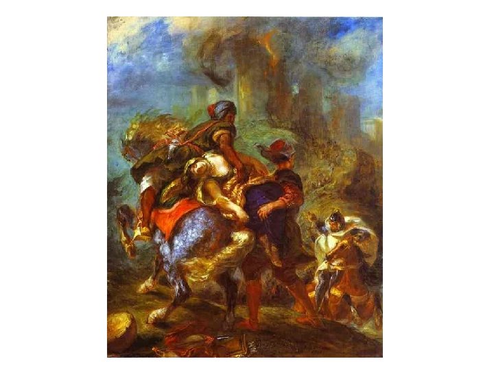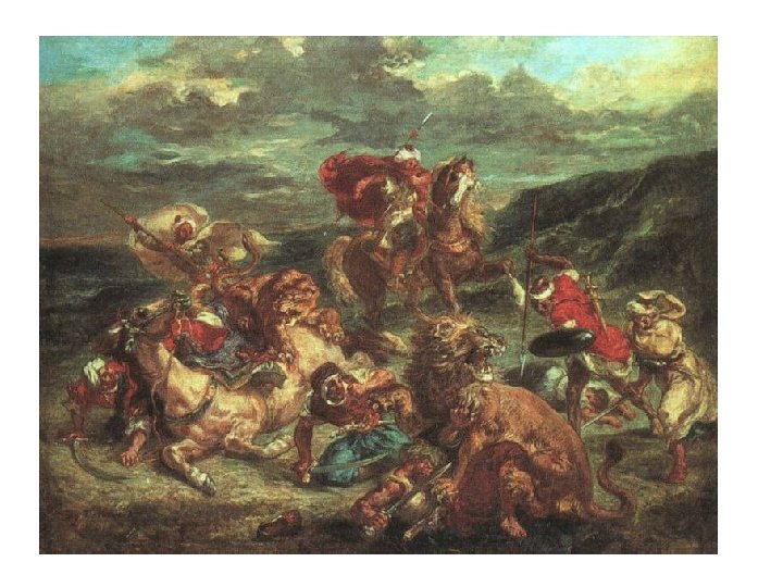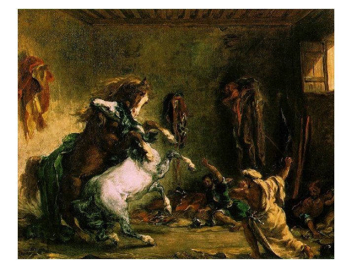 Eugene Delacroix: životní osudy • • • 1798 -1863 Malíř a karikaturista, vůdce romantiků Cesty: Itálie, Anglie, Maroko, Španělsko Klasické vzdělání Odmítal se nechat zatáhnout do nějakého uměleckého proudu