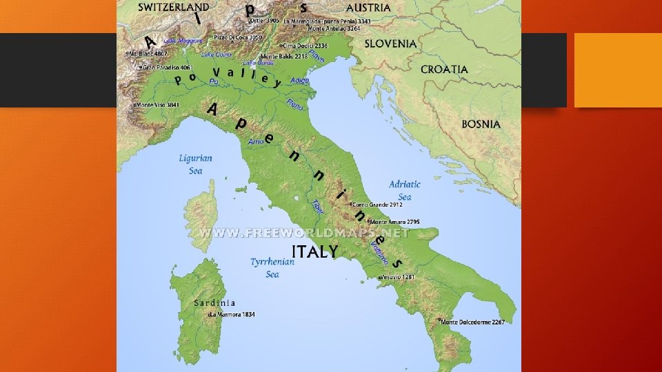 Label land forms and Rivers • Use the picture to help you glue it correctly • Glue the underside of the map side • Place it on the top of the next clean page • Use the map and atlas to label the landforms and the major rivers of Italy • Then use the atlas to help you answer the two questions