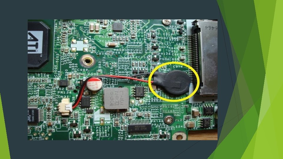 El reloj y la pila CMOS El reloj en tiempo real (o RTC) es un circuito cuya función es la de sincronizar las señales del sistema CMOS(Semiconductor de óxido metálico complementario), también llamado BIOS CMOS, conserva algunos datos del sistema, como la hora, la fecha del sistema y algunas configuraciones esenciales del sistema.