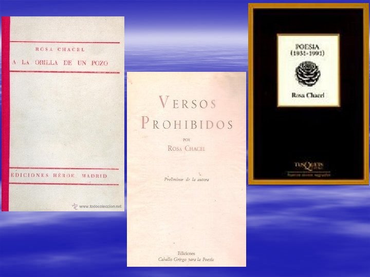 § Autora de POESÍAS: - A la orilla de un pozo (1936). - Versos prohibidos (1978). - Poesía (1931 -1991) (1992)