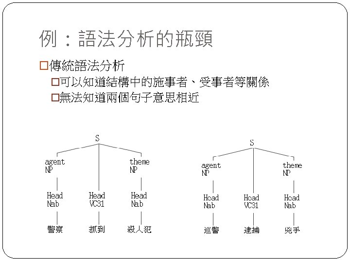 詞嵌入的類推性質 語法具類推 (analogy)的性質 語義具類推 (analogy)的性質 clothing apples apple shirt cars furniture car families chair family