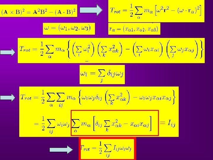 Utilizand formalismul indicial Iar componentele matricii au forma Pentru cazul unei distributii continue de masa: Cum exprimam energia cinetica in functie de momentul unghiular total ? Energia cinetica datorata rotatiei are forma: