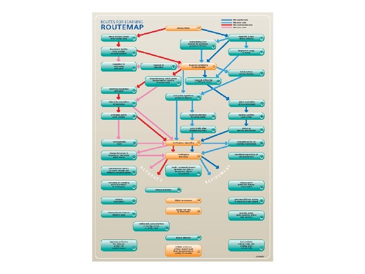 Routes for Learning aims to …. . contd Assess key areas of early learning – communication, social interaction, cognitive Support multi disciplinary approaches and involvement of parents/families Reflect the importance of relationships Encourage the development of reactive environments Focus on the learning process