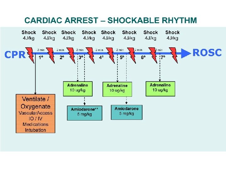 Léky adrenalin vasopresin zlepšuje krátkodobé přežití do přijetí, lepší než lidokain při VF/VT 300 mg i. v. /i. o. , možnost dalších 150 mg lidokain není statistický rozdíl oproti A 1 x 40 U i. v. /i. o. jako náhrada 1. nebo 2. dávky A amiodaron 1 mg i. v. každé 3 – 5 min, až po 3. defibrilaci vysoké dávky rutinně ne (předávkování beta-, Ca blokátory) jako alternativa, nezlepšuje přežití 1 – 1, 5 mg/kg i. v. magnesium při torsades de pointes (nepravidelná polymorfní VT s prodlouženým QT) 1 – 2 g/10 ml i. v.