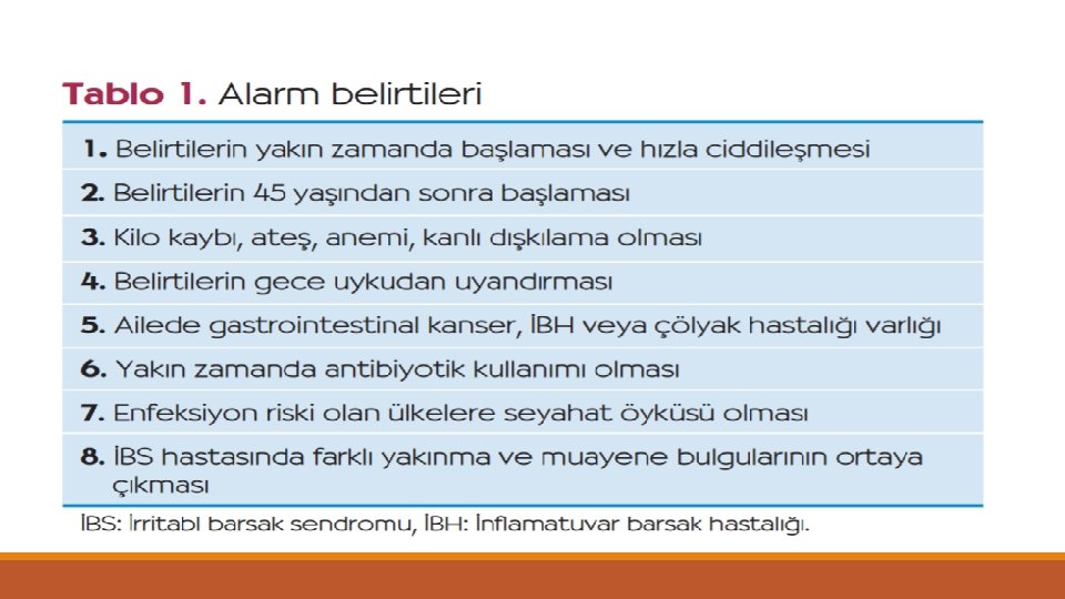 • • Destekleyici bulgular olarak gösterilen acil defekasyon, ıkınma, yetersiz boşalma, mukuslu dışkılama ve şişkinlik, karında gerginlik hissi ROME-III’de kaldırılmıştır. Yine de tanıya yardımcı olması açısından sorgulanabilir.