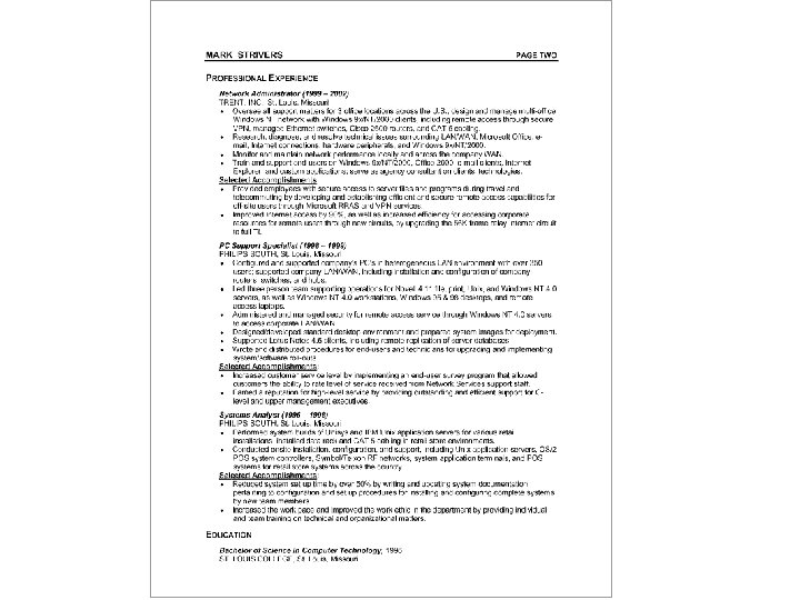 Chronological résumé Organized in order of when things happened List most recent position first, then follow in that order