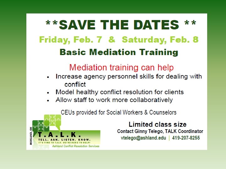 For Information on Mediation and Mediation Training 419 -207 -TALK (8255)
