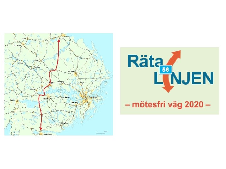 Räta Linjen - framtidsfrågor • Trafiken, och då särskilt den tunga trafiken, kommer att öka. • Standarden idag är på många delsträckor för låg – avseende tillåten hastighet, omkörningsmöjligheter, trafiksäkerhet • Ekonomisk utvecklingskorridor, med lokal och regional nytta för medborgare och näringsliv. • Stor betydelse för varuförsörjningen av Storstockholm och logistik i Mälardalen, Bergslagen och längs Norrlandskusten. • Räta Linjen är 4 mil kortare än E 4 och avlastar Stockholms vägar.