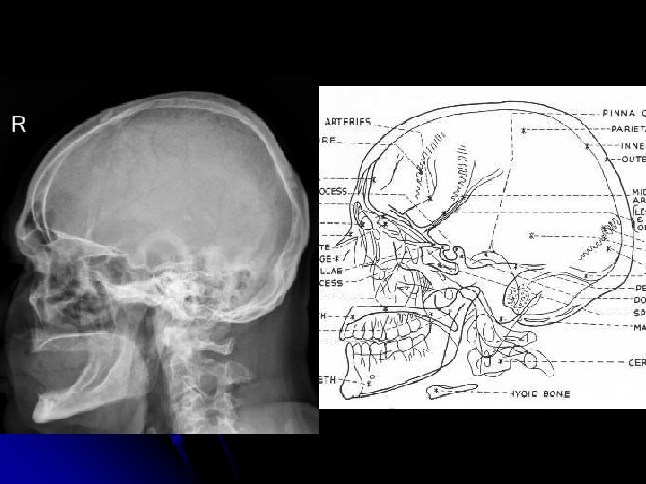 RTG anatomie skeletu l možnost kvalitního zobrazení skeletu jemné struktury (střední ucho) možnost hodnocení struktury – kostikalis, dřeň… l min. 2 projekce l l