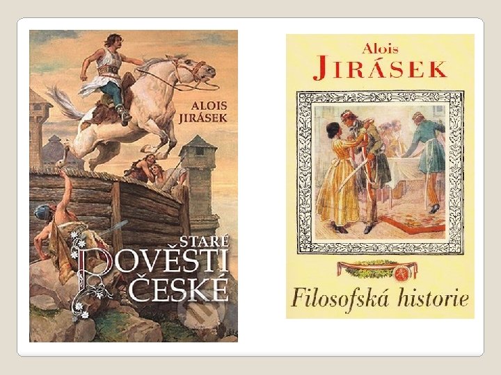 Alois Jirásek 1851 - 1930 nar. v Hronově prof. gymnázia v Litomyšli ženat – 7 dětí ( 6 dcer a 1 syna) přesídlil do Prahy zachytil naše dějiny od mýtických dob do národního obrození podporoval samostatnou republiku pohřben v Hronově – na pohřbu také TGM dodnes Jiráskův Hronov – přehlídka amatérského divadla