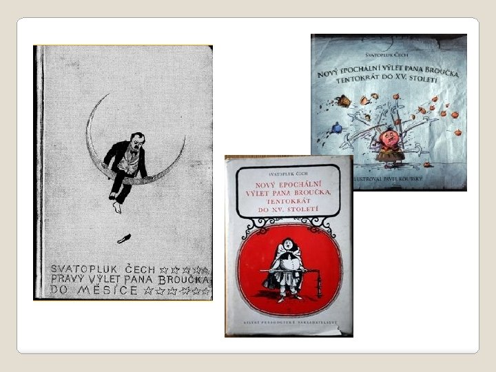 PRÓZA : slavné „broučkiády“ „broučkiády – základ science fiction Pravý výlet pana Broučka do Měsíce Nový epochální výlet pana Broučka, tentokráte do 15. století paroduje měšťáky, kteří utíkají od soudobých problémů chovají se jako „náměsíční“ ukazuje prázdné vlastenčení ty, kteří sledují jen vlastní prospěch a pohodlí, jsou zbabělí v kontrastu k zapáleným vlasteneckým husitům