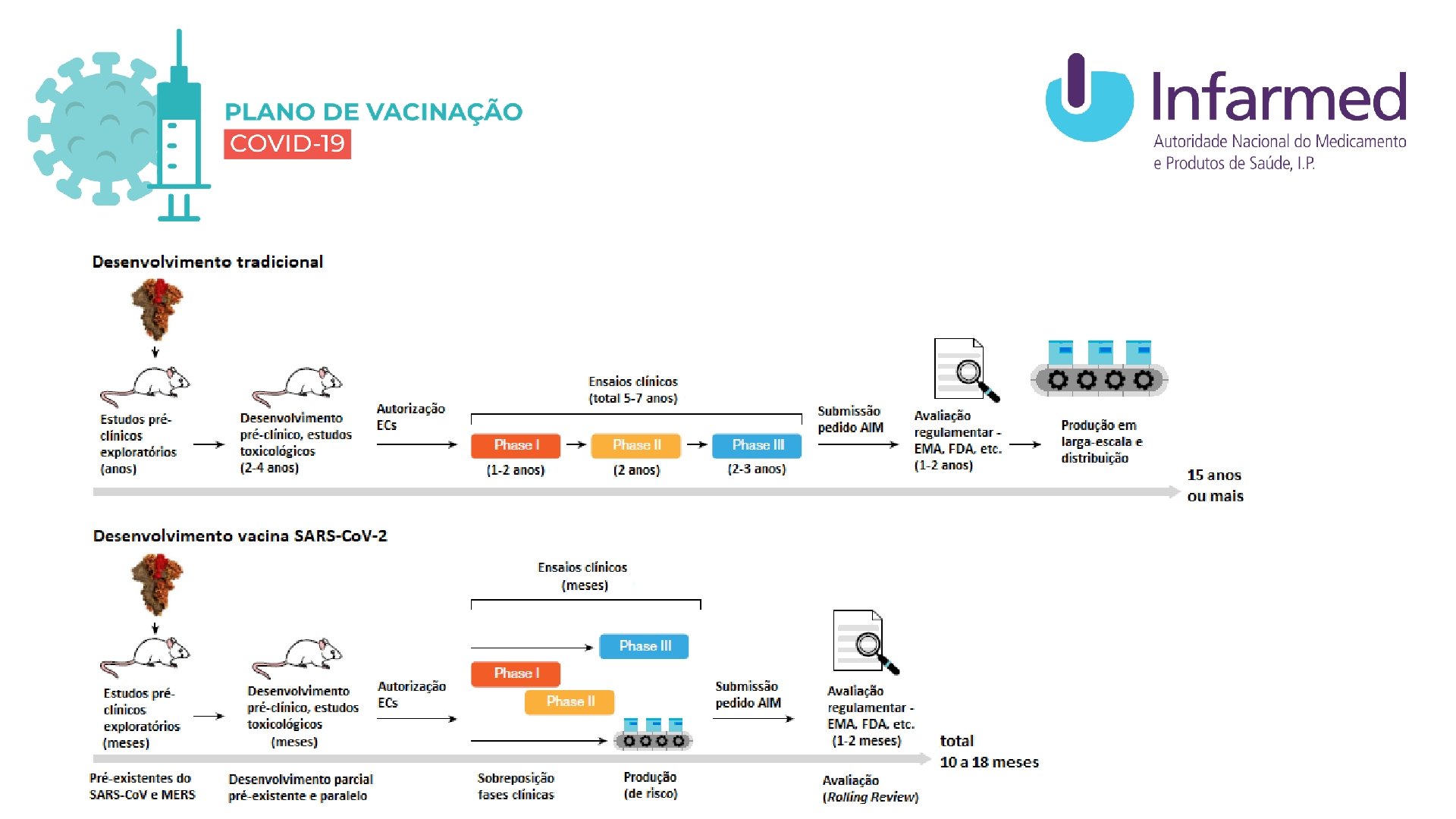 EMRN - European Medicines Regulatory Network Chefes das Agências (INFARMED) + EMA Garantir alinhamento em toda a Europa: - coordenando a avaliação das vacinas COVID -19 - assegurando a robustez do processo de avaliação CHMP – Comité de Medicamentos de Uso Humano da EMA – representantes de cada Estado-membro