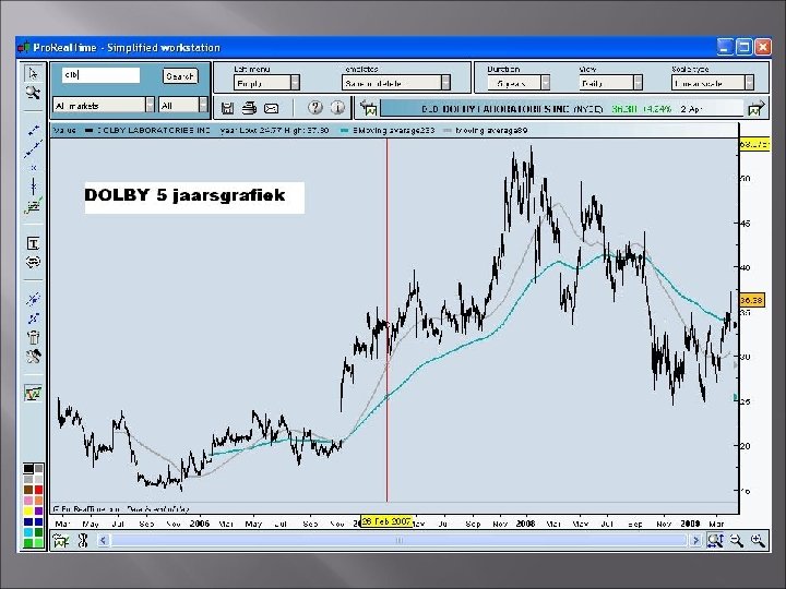 Wanneer nu kopen of verkopen ? Als je alle berekeningen heb gemaakt, en je hebt 1 of meerdere bedrijven gevonden die aan de criteria voldoen, wil je natuurlijk weten wanneer dan te kopen, en natuurlijk ook weer verkopen ? Daar kan je natuurlijk technische analyse voor gebruiken.