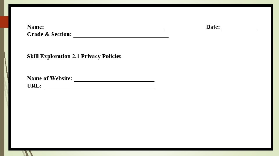Rules of Netiquette Skill Exploration 2. 1 (Privacy Policies) Visit a social networking site and look for the site’s privacy policy. The link is typically found at the bottom of the page and sometimes labelled only “Privacy”. Write a summary on how the website handles both your private and public information.