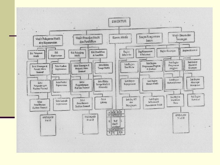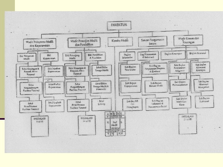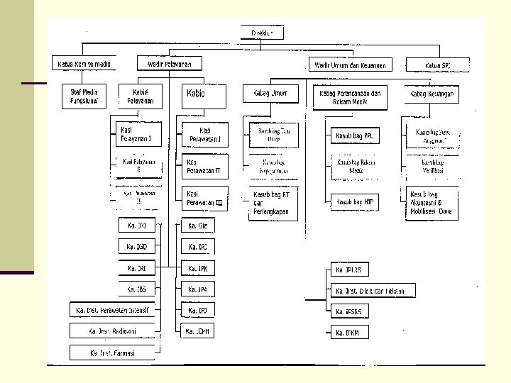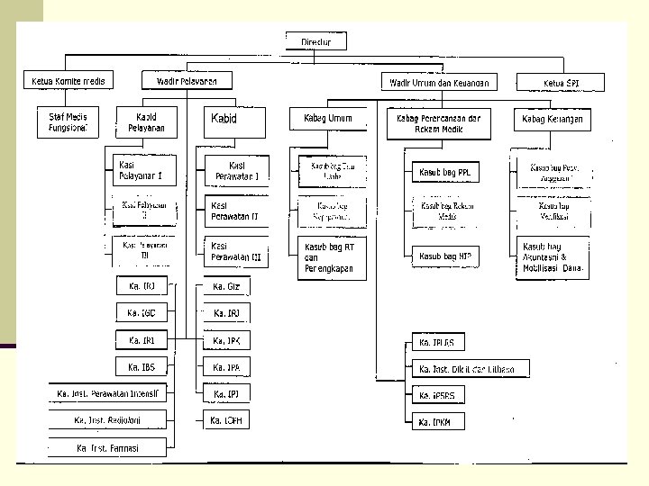 STRUKTUR ORGANISASI RS RS Umum Tipe B non Pendidikan Contoh: n Direktur n Wadir Pelayanan n Wadir Umum dan Keuangan n Komite Medis dan Staf Medis Fungsional n Satuan Pengawas intern