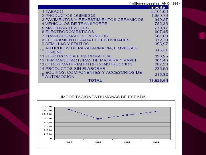 OPORTUNIDADES PARA LA EMPRESA ESPAÑOLA • Las relaciones España-Rumanía van en aumento: - Exportación *Materiales construcción *Productos semiterminados - Inversión * Sector agroalimentario. * Sector de procesamiento de la madera. * Sector intensivos en manos de obra. * Sector automoción. * Sector servicios
