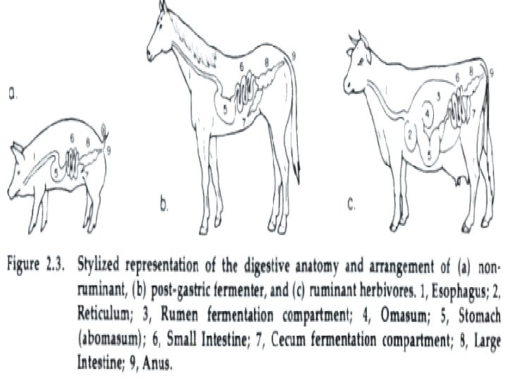 Objectives Describe the ruminant digestive system. n 1 Stomach, 4 Compartments q n n n Functions How they change with maturity Identify what kinds of animals have what type of digestive systems