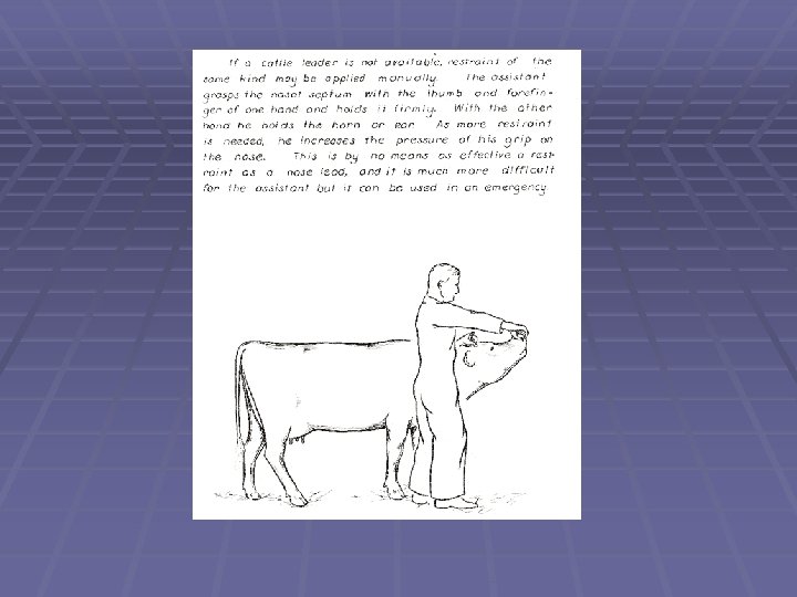 Restraints that divert attention § Tail restraint § Nose lead § § § IV injection Udder surgery Examine hoof § Restraint of the head