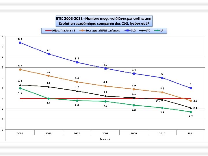 Plan de développement des usages du numérique à l’Ecole 4 - Nouer le partenariat avec les collectivités et Structurer le développement des usages du numérique par un appel à projets Le partage des compétences entre l’État et les collectivités dans le domaine éducatif rend d’autant plus nécessaire le travail de coordinationale et locale. Le ministère a souhaité refonder les relations avec les associations d’élus, et le numérique éducatif a été l’objet des premières discussions. Une convention de partenariat, permettant de clarifier les responsabilités, sera signée avec l’assemblée des départements de France (ADF) le 9 décembre, le travail avec l’association des régions de France (ARF) est déjà largement engagé pour aboutir à un dispositif similaire. En cohérence avec ces conventions et en réponse à un appel à projets lancé début 2011, les académies transmettront une proposition globale de développement du numérique, en partenariat avec les collectivités locales. Les projets retenus, qui couvriront l’ensemble de la France en 3 ans, recevront un soutien complémentaire pour accélérer leur mise en œuvre, notamment par le chèque "ressources numériques". 5 - Former les élèves à l’usage responsable des TIC Pour accompagner les élèves dans leur appropriation de la société numérique, l’éducation nationale doit former les citoyens numériques de demain, en transmettant les valeurs civiques dans la société de l’information. Au-delà de la formation technique, le Brevet informatique et internet, qui valide les compétences numériques acquises par les élèves, accordera dès la rentrée 2011 plus d’importance à l’apprentissage de l’usage responsable de l’Internet. Les équipes pédagogiques et les élèves pourront s’appuyer dès le début 2011 sur un portail de ressources pédagogiques sur ce thème. http: //www. education. gouv. fr/cid 54064/plan-dedeveloppement-des-usages-du-numerique-a-l-ecole. html Académie de Toulouse – Mission TICE - Réunion des référents numériques - 24 Janvier 2012 Retour 62