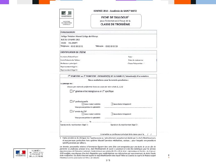 RUNION DINFORMATION DES PARENTS DLVES DE 3ME NOUVEAU