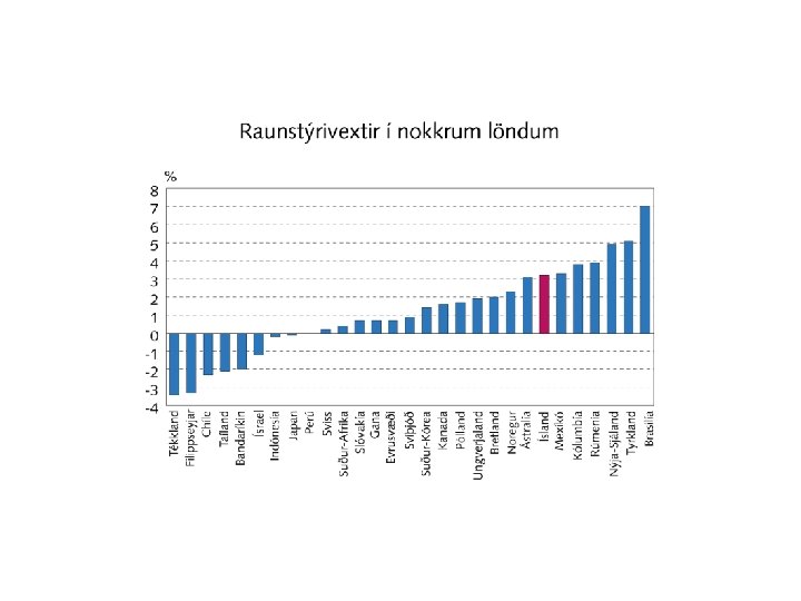 Fyrstu áætlanir hafa oft verið langt frá endanlegri niðurstöðu Spár og fyrstu áætlanir um landsframleiðslu árin 2004 og 2005 9, 0 % 8, 0 7, 0 6, 0 5, 0 4, 0 3, 0 2004 – spá SÍ 2, 0 2004 – mælingar HÍ 2005 – spá SÍ 1, 0 2005 – mælingar HÍ 2006. 3 2006. 2 2006. 1 2005. 4 2005. 3 2005. 2 2005. 1 2004. 4 2004. 3 2004. 2 2004. 1 2003. 4 2003. 3 2003. 2 2003. 1 2002. 4 0, 0
