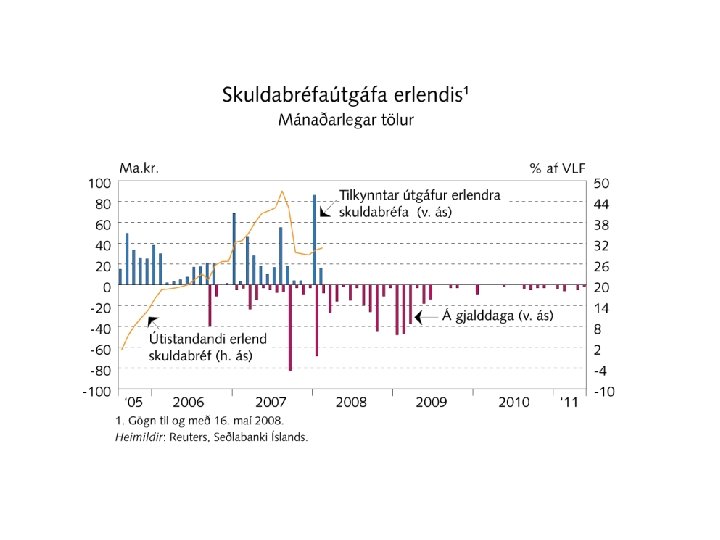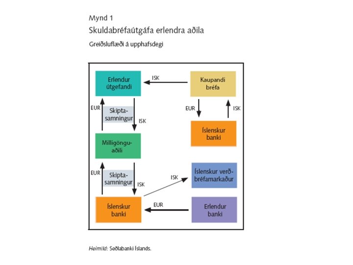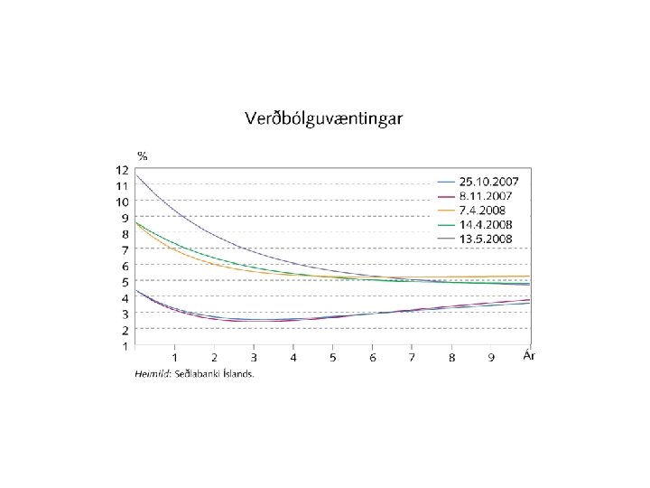 Leiðir til þess að bæta framkvæmd peningastefnu • Betri líkön - spár • Betri þjóðhagsreikningar – Einkum fjármunamyndun • Skýrari boðskipti (e. communication) peningastefnu • Virkari markaðir/meiri útgáfa ríkisskuldabréfa • Efnahagsstefna ríkisstjórnar taki mið af verðbólgumarkmiði • Gefa Seðlabanka aukið reglugerðarvald yfir íbúðalánamarkaði?