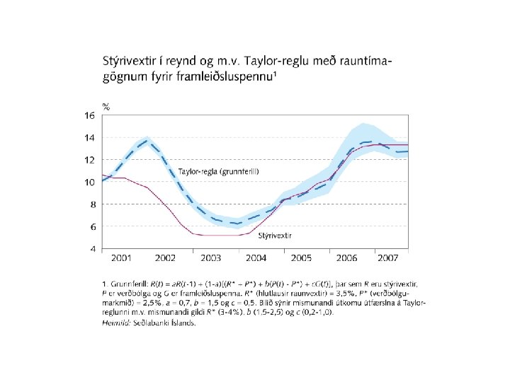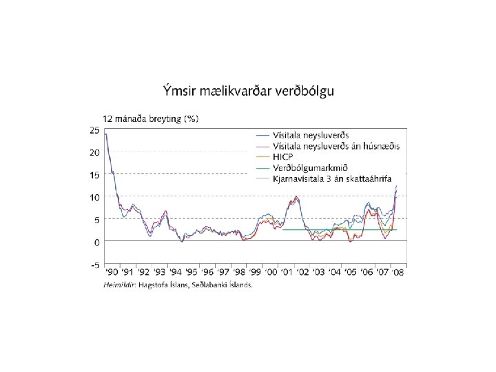 Hvers vegna þarf svo háa stýrivexti? • Stærð eftirspurnarskella • Erfitt að skapa traust um verðbólgumarkmiðið eftir margra áratuga verðbólgusögu • Hnökrar á miðlunarferli peningastefnunnar