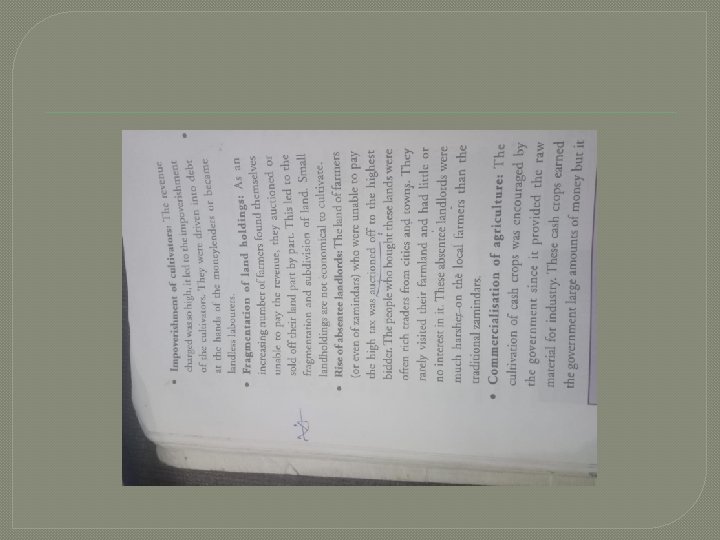 �Fragmentation of Land Holdings: - As an increasing number of farmers found themselves unable to pay the revenue, they auctioned or sold off their land part by part. This led to the fragmentation and subdivision of land. Small landholdings are not economical to cultivate.