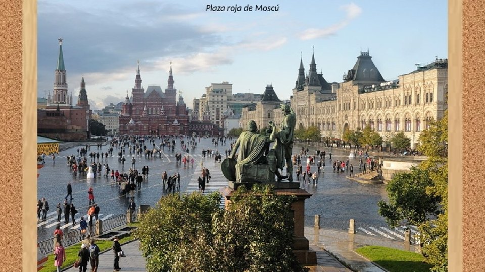 Rusia, es el mayor país del mundo, ocupa más de una novena parte de la Tierra y se extiende a través de la mayor parte del norte de Eurasia, por lo que alberga una gran variedad de paisajes y climas. El país con mayor extensión territorial del mundo cuenta con un abanico de paisajes impresionantes, desde Sibera, San Petersburgo, Sochi, dónde se realizaron los JJOO de invierno pasado. Muchos compatriotas ya están pensando en ir al Mundial de Fútbol que se celebrará en 2018, y aquí te mostramos algunos de los paisajes de Rusia que deberías conocer antes de su viaje. Sus espacios naturales son inmensamente variados: desde pequeños y tranquilos lagos en el oeste de la parte occidental, hasta el lago más profundo del globo, el Baikal; desde la antigua taiga siberiana, hasta las delicadas flores de los prados alpinos del Cáucaso; desde los silenciosos montes Urales, hasta los inquietos volcanes de Kamchatka. Los legendarios ríos rusos llevan sus aguas a los mares que delimitan la línea de la costa del país, una de las más extensas del mundo. Cada una de las grandes regiones de Rusia posee sus peculiaridades. Creó: Jeremías Para: mis pps Música: Noches de Moscú