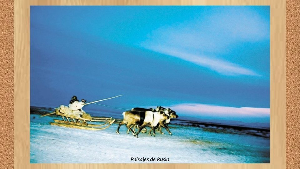 Paisajes del Norte de Rusia En el Norte Extremo de Rusia se encuentran los desiertos Árticos y la tundra en donde las temperaturas en el mes mas cálido no superan los -10°C. Durante todo el año (desiertos Árticos) o durante 10 meses (tundra) estas zonas están cubiertas de nieve. No existen árboles, solo alguna vegetación en la tundra compuesta por musgos, líquenes y hierbas. Aquí se puede encontrar el abedul enano pero es tan pequeño que no se le considera árbol. La evaporación es muy escasa por lo que hay muchos pantanos cubiertos por musgos donde crecen bayas rojas, ricas en vitamina C y con la que preparan los confites. Entre los distintos animales en esta área se pueden encontrar zorros y roedores. También hay renos que son la base de la economía aborigen. La ocupación tradicional de ellos es pastar renos, cazar morsas y focas y pescar. La carne y el pescado componen casi toda la dieta de la región, donde casi no existen alimentos de origen vegetal. Sus casas normales son tuntas hechas de pieles de reno, morsa y foca.