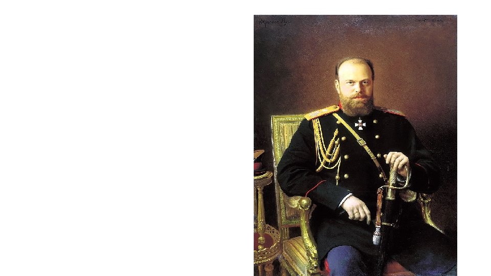 Alexandr III. (1881 – 1894) • Alexandr III. Nechtěl vládnout, původně měl nastoupit na trůn jeho starší bratr Mikuláš, který předčasně zemřel • Snažil se o umírněnou konzervativní politiku • Ulehčil v poplatcích za půdu rolníkům, aby zmírnil jejich postavení a zabránil krizi na venkově • Omezil pravomoci porotního soudu, odebral jim pravomoci soudit přestupky státních a městských úřadů • Snažil se povznést autoritu šlechtického stavu, v čem viděl spasení Ruska • Za jeho vlády Rusko nevedlo války, nazýván „Mírotvůrcem“ • Uzavřel šťastný sňatek s dánskou princeznou Dagmar, která byla původně nevěstou jeho bratra, měli šest dětí, nejstarší syn Mikuláš II. se stal posledním ruským carem