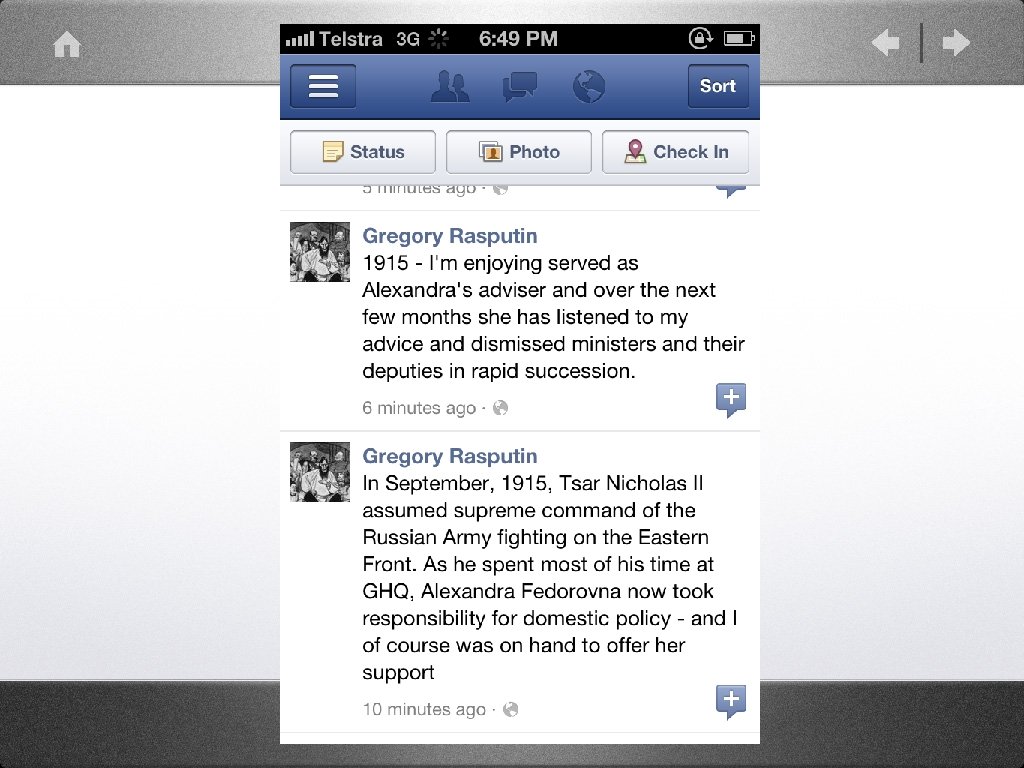 RUSSIA: Analysing the Leaders, Events and Ideas of the Russian Revolution Nick Frigo, Santa Maria College/Education Consultant. I just found the most amazing information about Lenin. ’ ‘Did you know what Kerensky did after the revolution? ’ ‘How was Rasputin killed? ’ The ideas, leaders and movements of the Russian Revolution abound in rich content, the challenge is balancing the amount of material, the student 'interest' level and building student preparedness for the exam. During the session Nick will explore a range of visual and written primary sources relevant to the first Outcome for Unit 3 and strategies for scaffolding student learning. ‘. .