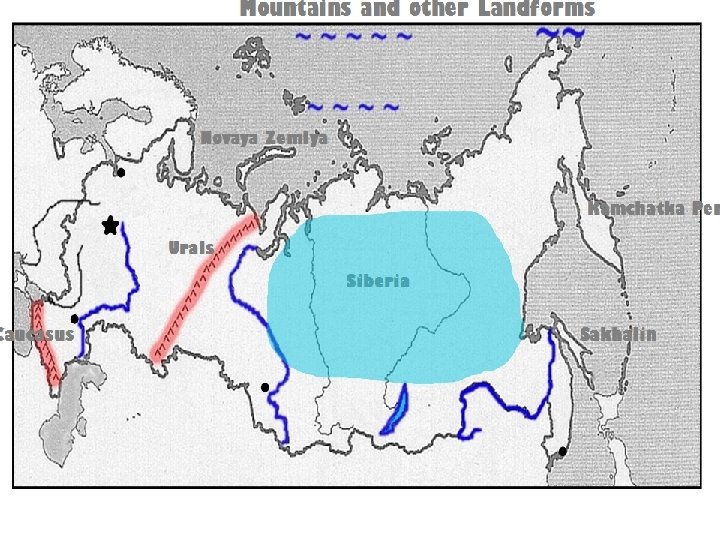 Siberia • Siberia is the land that lies east of the Ural Mountains. • It means “sleeping land”. • Known for its harsh & cold climates. • Natural resources: many minerals, natural gas, oil, and mining Video to show! Located in the flash drive in same Folder as this Power Point!