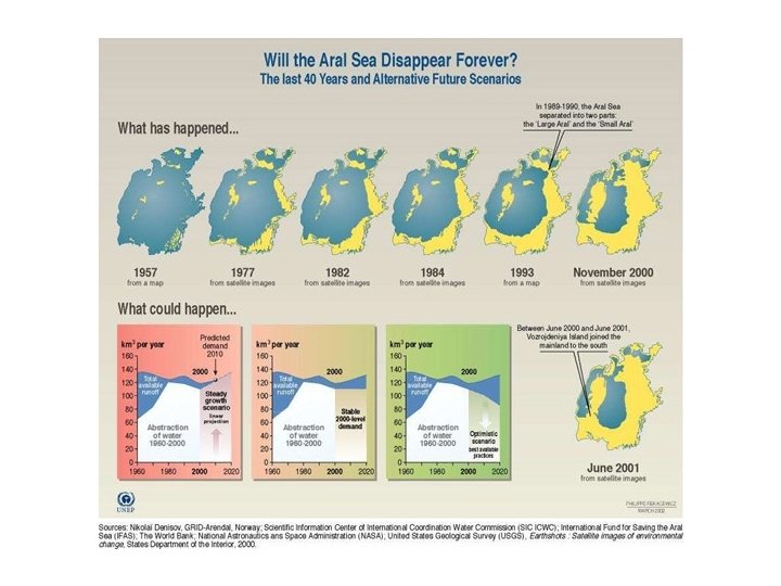 Lakes – Caspian » Saltwater » 750 mi N-S » Largest inland sea-world – Aral » Saltwater » Lost 80% water since 1960 » Extensive irrigation » Vanish soon