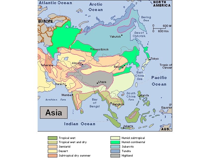 Climate • • • Humid Continental – West Sub-Arctic – East Tundra – North Steppe – Semiarid – Southeast Desert – Arid – Southwest (Central Asia) • Siberia – Extremely cold, dry (little rainfall) • Arctic Northern Shores - Freeze