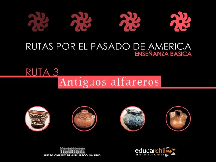 RUTA 3 Los primeros cuencos cerámicos como herederos de recipientes naturales La sofisticación de la cerámica ritual Figurillas femeninas y fertilidad en Valdivia Los primeros alfareros del sur de Chile Existen varios tipos de arcilla, que es una tierra que al mezclarse con agua y otras materias vegetales o minerales se transforma en greda o pasta. Es decir, adquiere propiedades plásticas que hacen posible modelarla o darle forma en un molde, para luego endurecerlas mediante su cocción. Los alfareros precolombinos lograron modelar la arcilla de muchas formas, obteniendo finas piezas de cerámica. Cuando la cerámica imita a la piedra Nasca y la explosión del color en la cerámica América Precolombina Áreas Culturales Cuadro Cronológico