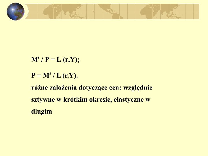 Model monetarystyczny: Założenia: ceny elastyczne (pionowa krzywa podaży); spełniony parytet siły nabywczej. Md = P L(i, Y) Ms = Md Ms/ P = L(i, Y) ponieważ: E P* = P, to: Ms/ E P* = L(i, Y) E = Ms / [ P* L(i, Y)]