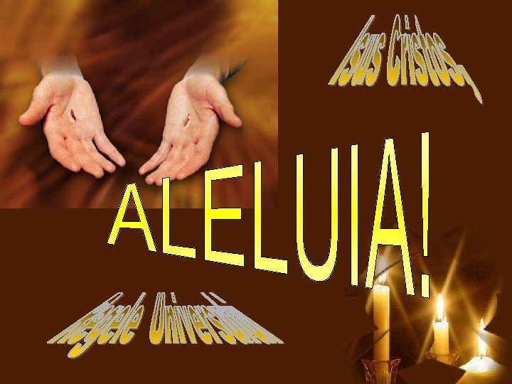 aviditate, Cristos învinge, Fără Cristos domneşte, orgoliu, vanitate; Cristos veşnic stăpâneşte. simplitatea şi frumuseţea. Slavă în ceruri, slavă-n adâncuri, Slavă pe-ntreg pământul. . . El biruieşte moartea prin moarte Şi-n slavă biruitor se înalţă. Cântecul nostru de preamărire Cânte-l întreaga omenire, Aleluia!