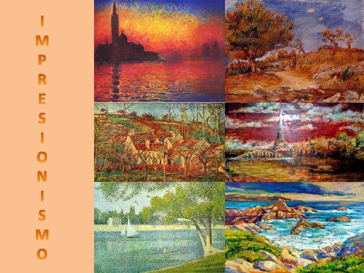o m s i n o i s e Impr v Se aplica en la música, la literatura y, especialmente, en la pintura. v Se caracteriza por intentar plasmar la luz y el instante. v Fue bautizado con su nombre con ironía y respeto al cuadro de Monet: el sol naciente. v este cuadro es opuesto a la pintura metafísica. El so l nac iente , de Mon et