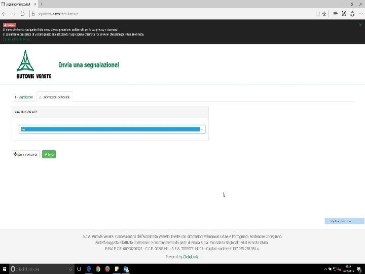 S. p. A Autovie Venete Prototipo del Sistema di segnalazioni per la prevenzione della corruzione