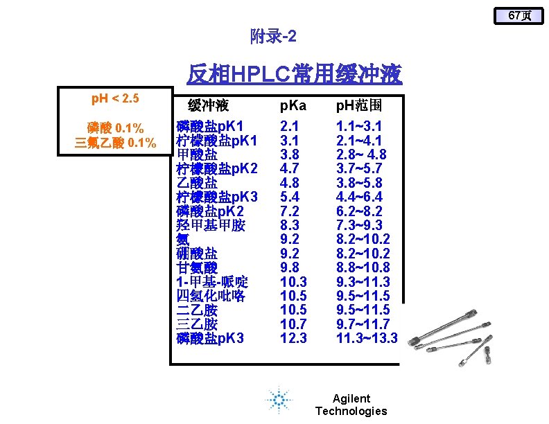 25页 液相柱---保留值与p. H的关系 Extend C 18 p. H 2~11. 5 Bonus-RP p. H 2~9 Eclipse XDB C 18 p. H 2~9 Stable. Bond C 18 p. H 1~8 Agilent Technologies