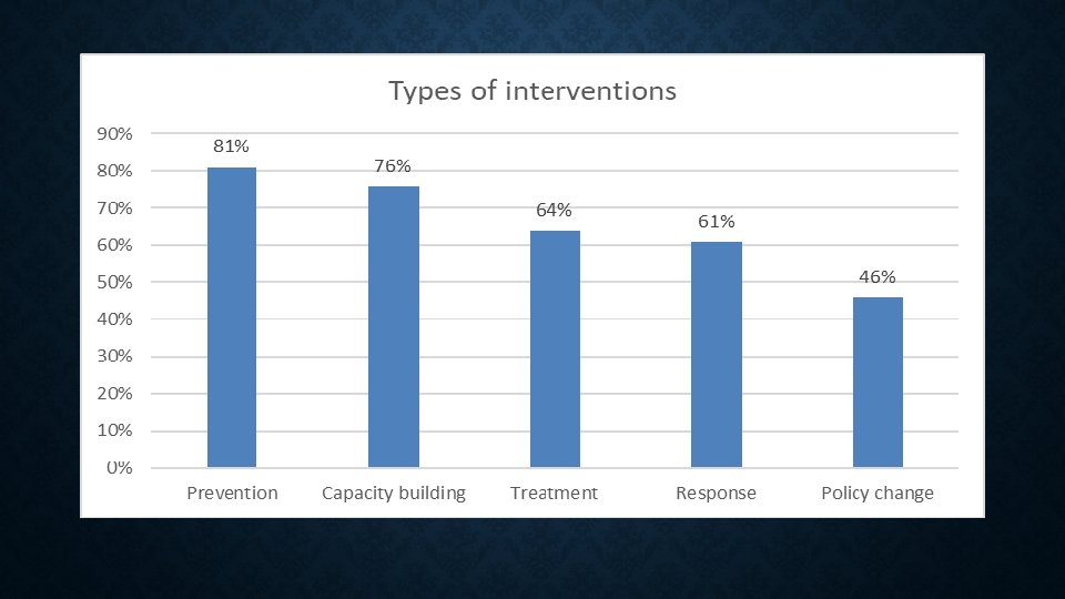 BREAKDOWN OF CASE STUDIES • A total of 75 good practices on Sexual and Reproductive Health and Rights were presented at Summits between 2017 and 2018. • Of these 31 were on gender-based violence (GBV), 30 on health, and 14 on HIV and AIDS.
