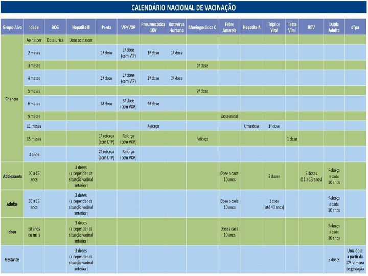 SADE COLETIVA Professor Hugo Pascoal Calendrio Vacinal Professor