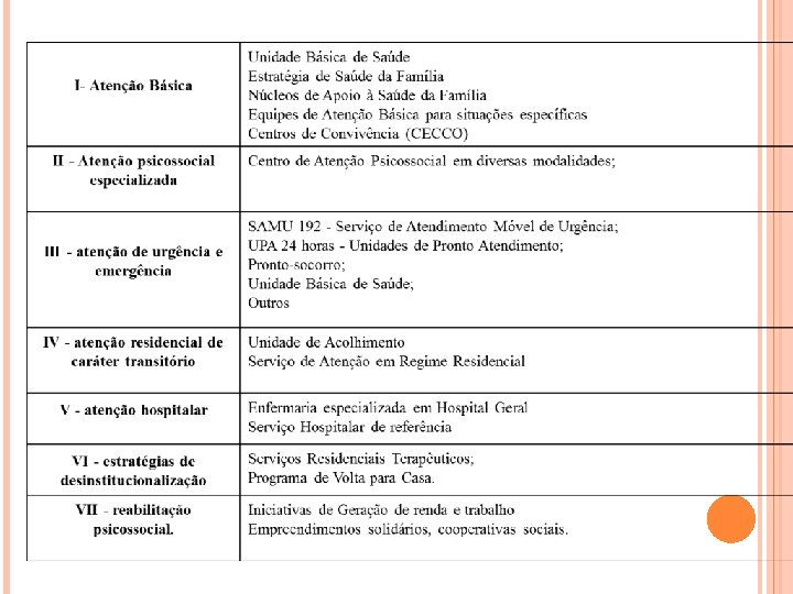 ATUALMENTE RAPS Locus de intervenção: comunidade, território de vida; Objetivo: inclusão social; Quem participa: todos os profissionais de saúde – corresponsabilização pelo cuidado; Rede insuficiente para as necessidades da população. Estratégias de desinstitucionalização http: //g 1. globo. com/sao-paulo/sorocaba-jundiai/especialpublicitario/prefeitura-de-sorocaba/sorocaba-emnoticias/noticia/2016/05/paciente-de-95 -anos-de-idade-deixa-overa-cruz. html