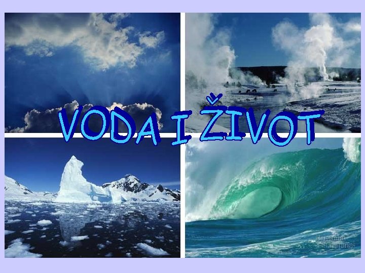 VODA I ŽIVOT Život na Zemlji počeo je u vodi i evoluirao je 3 biliona godina. Današnja, savremena civilizacija i dalje zavisi od vode Ćelije u ljudskom organizmu sadrže od 70– 95 % vode