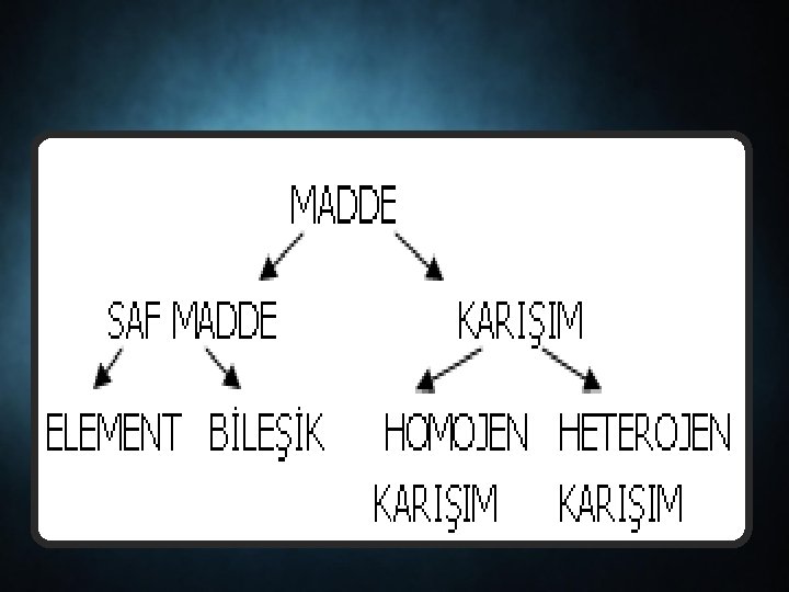 • SAF MADDE: Kendisinden başka madde bulundurmayan maddelere denir. • ELEMENT: İçerisinde tek cins atom bulunduran maddelere denir. Yani elementlerin yapı yaşı atomlardır